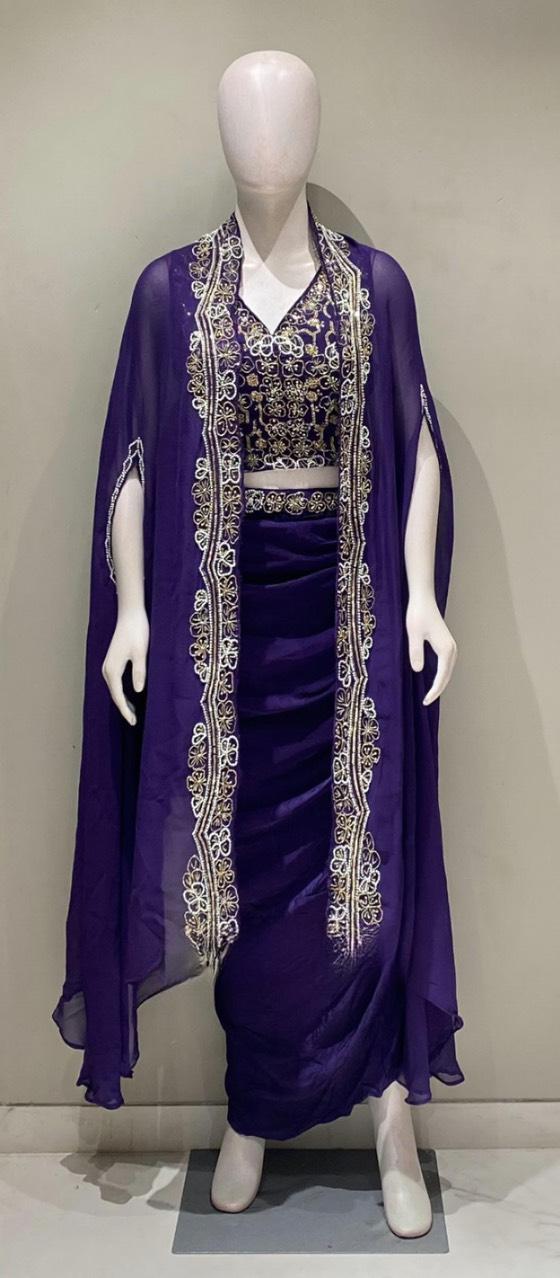 Gazal Purple Drape Saree with Side Cut
