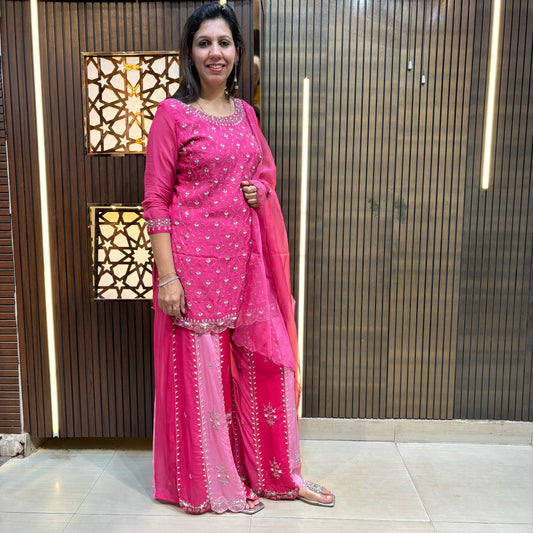 Fuchsia Dream: Embroidered Kurta with Ombre ShararaRegular price Rs. 6,700.00Regular priceUnit price / perRs. 10,995.00Sale price Rs. 6,700.0039% OFFSold out